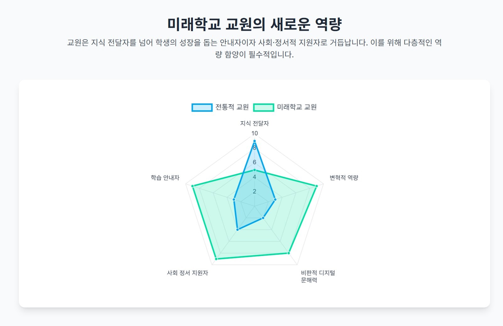 미래학교 교원은 변혁적 역량과 비판적 디지털 문해력을 포함한 다층적 역량을 함양해야 한다 [User Query].