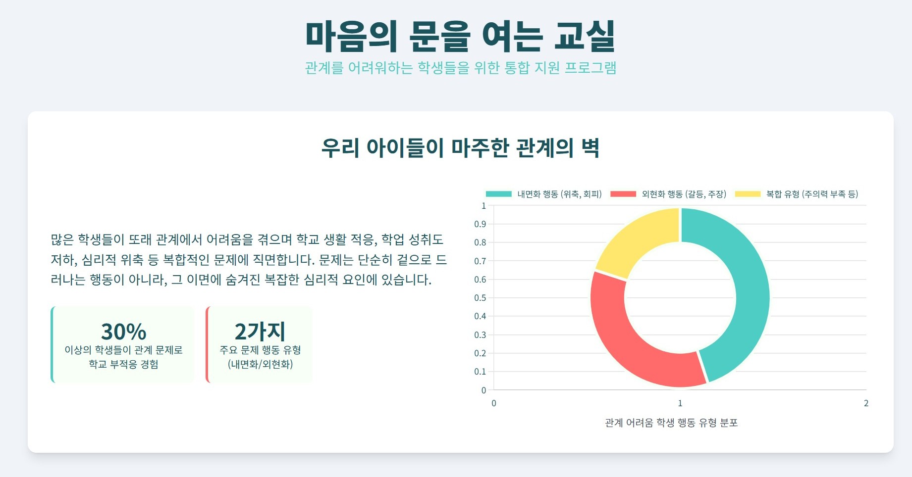 | 통합적 접근 | 심리치료, SEL, 협력 활동을 유기적으로 결합 | 마음트리, 공감 프로젝트 등 |