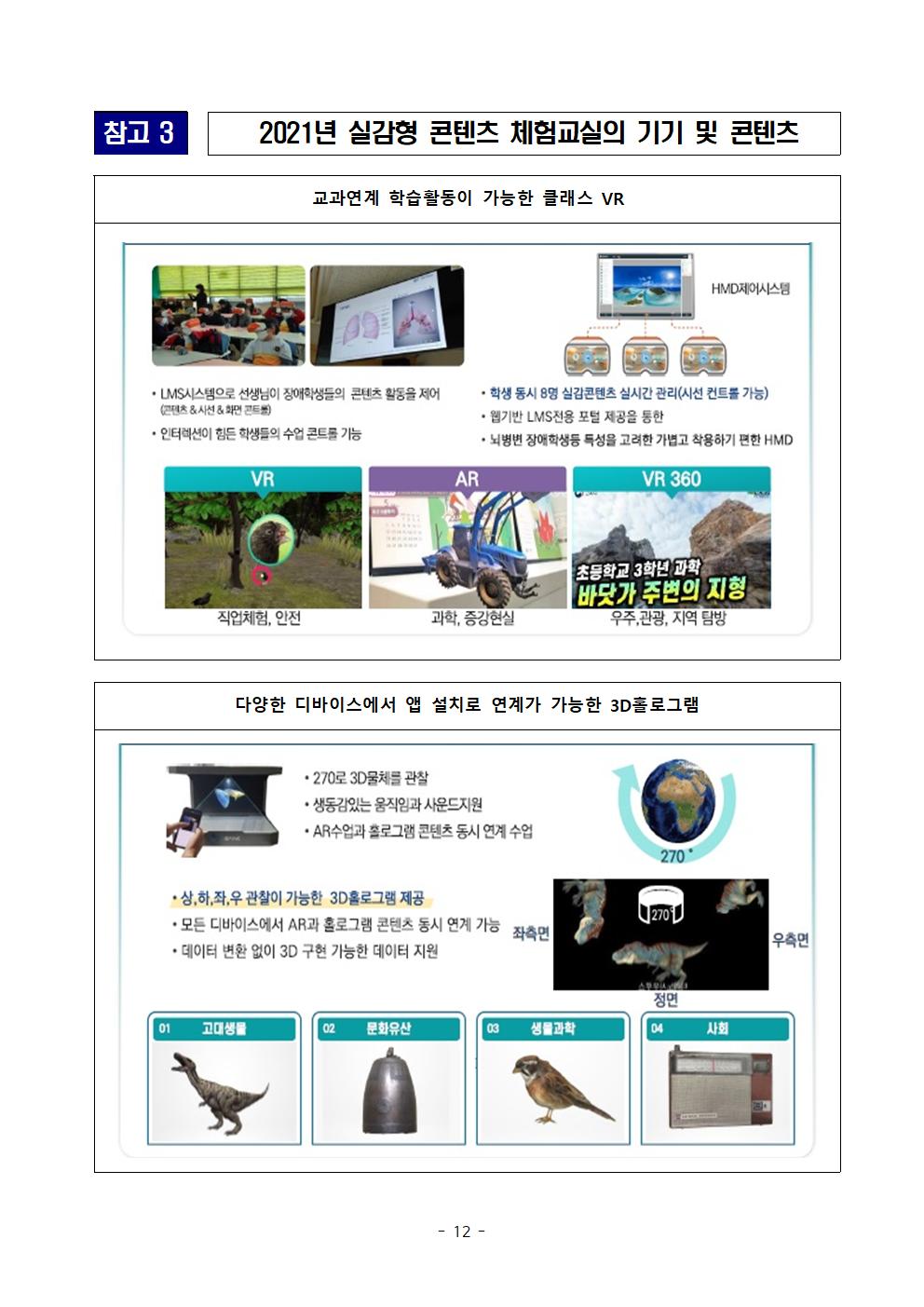 - 장애학생의 체험형 학습이 가능한 가상현실 기기 보급 및 콘텐츠 운영 지원을 통해 안전한 환경에서의 맞춤식 학습 지원